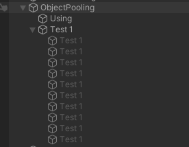 그럼 오브젝트 풀링에서 해당 오브젝트의 이름을 가진 폴더와 안에 갯수 만큼 생성이 됩니다.